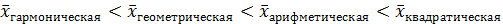 Средняя арифметическая, средняя гармоническая, средняя геометрическая и средняя квадратическая, рассчитанные для одних и тех же исходных данных, отличаются друг от друга. При этом всегда выполняется следующее соотношение: