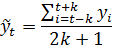 за определенный интервал (окно сглаживания), длина которого определена заранее. При этом сам выбранный интервал времени «скользит» вдоль ряда.