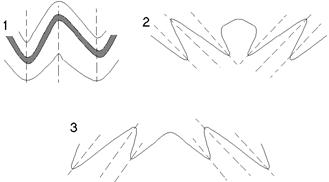 Рис. 1. Вергентные формы: 1 – конвергентная; 2 – дивергентная; 3 – антиквергентная. |