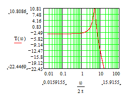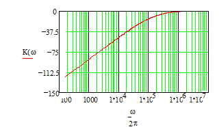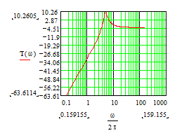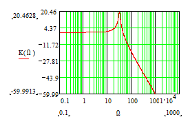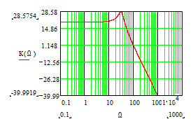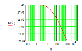 Результат расчета представлен в виде графика ЛАЧХ, на котором можно определить крутизну среза на линейном участке. Нетрудно убедиться, что она составляет 40 децибелл на декаду.