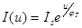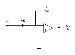 - заряд электрона. При комнатной температуре тепловой потенциал составляет примерно (20-25) милливольт. Величина тока насыщения в зависимости от типа диода лежит в пределах (1-100) микроампер. В рассматриваемой схеме ток, протекающий через диод, равен U1/R. Выходное напряжение определяется падением напряжения на диоде и может быть определено, как