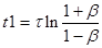 . Первое слагаемое описывает убывание положительного напряжения, имевшегося на конденсаторе в момент переключения, а второе слагаемое описывает заряд конденсатора отрицательным напряжением. Правая часть уравнения соответствует уровню, при котором произойдет очередное переключение. Решая это уравнение относительно переменной