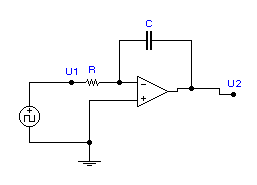 Генераторы линейно изменяющихся напряжений (ГЛИН) применяются в различных устройствах аналоговой техники и предназначены вырабатывать сигналы, характерной особенностью которых является наличие временного интервала, в пределах которого выходное напряжение изменяется по закону линейной функции, т.е. линейно нарастает или линейно убывает. В большинстве случаев при создании схем ГЛИН используется принцип заряда конденсатора, а основу соответствующих схем на ОУ составляет интегратор. Принцип построения схемы ГЛИН на основе интегратора основан на сочетании интегратора на ОУ с генератором прямоугольных импульсов, который также может быть выполнен на основе ОУ. Схема имеет вид, показанный ниже. Как видно, она состоит из интегратора с цепью отрицательной обратной связи в виде зарядно-разрядной цепи R1C1, на вход которого подключен генератор прямоугольных импульсов, вырабатывающий напряжение U1. Напряжение U2 на выходе интегратора имеет пилообразную форму с крутизной нарастания и спада, численно равной