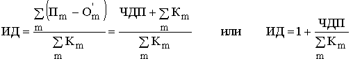 Индекс доходности инвестиций (ИД) - отношение суммы элементов денежного потока от операционной деятельности к абсолютной величине суммы элементов денежного потока от инвестиционной деятельности. Он равен увеличенному на единицу отношению ЧДП к накопленному объему инвестиций.