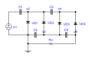 Схема четырехкратного увеличения выпрямленного напряжения.