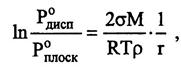 где P0дисп. и P0плоск. - давление насыщенного пара над диспергированным веществом или в капилляре и над плоской поверхностью соответственно;
