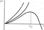 Когда температура жидкости становится ниже точки плавления, то GS < GL и появляется возможность самопроизвольной кристаллизации, т.е. ∆G < 0. Но если радиус зародыша меньше некоего критического размера, на его рост должна затрачиваться работа (ее величина растет с увеличением радиуса) и при отсутствии затрачиваемой работы зародыш должен исчезнуть. Благодаря В результате роста зародыша в переохлажденной до определенной температуры жидкости ∆G растет, но при некотором критическом значении rкр величина ∆G достигает экстремального значения, а затем падает, как это видно из рис.