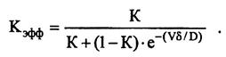 Реальный (эффективный) коэффициент распределенияКэфф. примеси является функцией равновесного коэффициента распределения К, скорости движения фронта кристаллизации V, толщины диффузионного слоя δ и коэффициента диффузии D примеси в диффузионном слое: