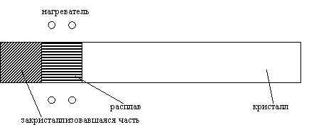 Наиболее эффективным методом глубокой очистки металлов оказалась зонная перекристаллизация по Пфанну. При зонной перекристаллизации расплавляется не весь исходный материал, подлежащий очистке, а только его узкая часть (зона), которая перемещается вдоль слитка. Зона ограничена фронтом плавления и фронтом кристаллизации.