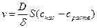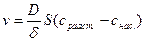 Если в этом выражении v есть приращение растворенного вещества за единицу времени, а при постоянной температуре D, S и δ величины, постоянные, и обозначив