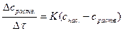 через постоянную величину К (константа скорости растворения), получим следующее выражение для приращения концентрации растворенного вещества за единицу времени:
