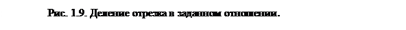 При делении отрезка прямой в заданном отношении используется теорема о подобии треугольников, известная из курса элементарной геометрии. Так, если необходимо отрезок АВ разделить в отношении 2:3, тогда и его проекции будут разделены в том же отношении. Для этого на одной из проекций (например, горизонтальной) из любой граничной точки (например, В) отрезка проведем прямую линию d в произвольном направлении (рис. 1.9). Затем отложим на ней 5 равных отрезков, после чего соединим полученную точку В* с точкой А1. Далее через вторую засечку на линии d проведем прямую, параллельную А1В*. На отрезке А 1 В 1 получим точку С 1, которая делит его в заданном отношении, т.е. В 1 С 1: А 1 С 1=2: 3.