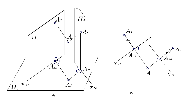 Рис. 2.13. Интерпретация способа замены плоскостей проекций