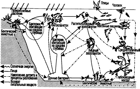 Гидробиоценоз может рассматриваться как живая надорганизменная биологическая система только в том случае, когда все ее элементы включаются в единую трофическую цепь круговорота вещества и энергии [7].