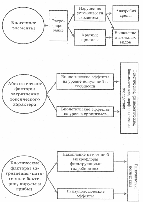 Экологические последствия загрязнения морских экосистем выражаются в следующих процессах и явлениях (рисунок 7.4):