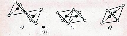 Рис. 7. Различные способы соединения кремнекислородных тетраэдров: