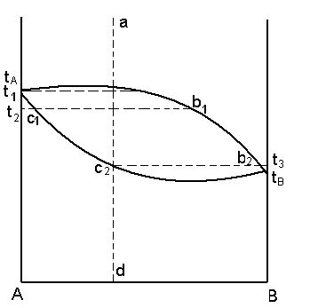 Таким образом изменения состава твердой фазы можно схематически изобразить следующим образом: tb → tе→c→d.