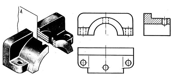Если виды смещены относительно главного вида, то они обозначаются на чертеже как дополнительный вид, по типу "А" (рис. 9.2).