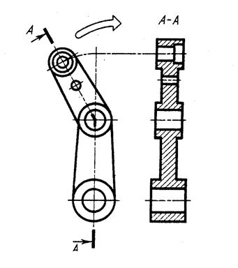 Они имеют такое же обозначение, как сложные и наклонные разрезы, при этом они могут быть вычерчены с изменением масштаба и повернуты. Если сечение повернуто относительно заданной секущей плоскости, то после присвоения имени ставится знак "повернуто" в виде окружности диаметром 3 - 5 мм и стрелкой, расположенной на ней. Внутри контура сечение штрихуется тонкими линиями под углом 450.