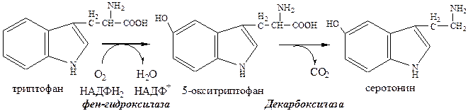 Серотонин образуется из три в надпочечниках, ЦНС и тучных клетках.