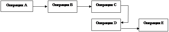 При описании взаимосвязей по методу операции в узлах (или "вершина – работа") операции изображаются в вершинах (узлах), а взаимосвязи – в виде направленных дуг, соединяющих соответствующие вершины (рис. 6). Этот метод использует большинство программных продуктов управления проектами.