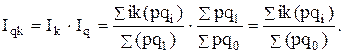 Если Ik умножить на индекс объема продукции (Iq), то произведение даст динамику объема продукции с учетом изменения ее качества.