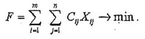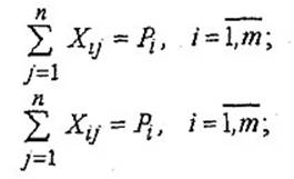 Xij – количество продукта, поступающего из пункта производства (хранения) i в пункт потребления j