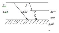 55Cs137 → 56Ba137 + ē + y