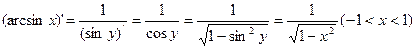 выводятся с помощью формулы для производной обратной функции и одной из соответствующих