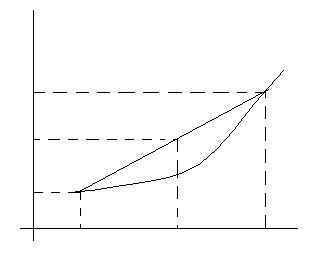 Аналогичное условие вогнутости функции означает, соответственно, что любая дуга графика функции лежит над хордой, стягивающей эту дугу.