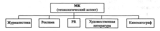 С содержательной точки зрения МК включает в себя журналистику, рекламу, PR, художественную литературу, кинематограф (рис. 2).