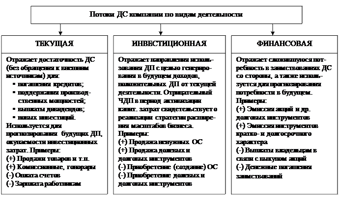 Денежные потоки – это приток и отток денежных средств и их эквивалентов. Под эквивалентами ДС понимают краткосрочные, высоколиквидные вложения, легко обратимые в определенную сумму ДС и подвергающиеся незначительному риску изменения ценности, со сроком размещения обычно не более 3-х месяцев (а также овердрафтное кредитование).