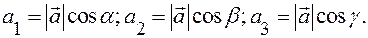 Из равенств (4) следует, что каждая координата вектора равна произведению его модуля на соответствующий направляющий косинус (в ортонормированном базисе).