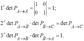 называется определителем матрицы перехода. Он отличен от 0, так как в противном случае его строки были бы пропорциональны, следовательно, векторы