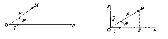 Установим связь между полярными и декартовыми прямоугольными координатами точки. Для этого к полярной системе присоединим репер