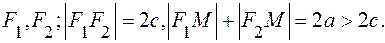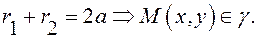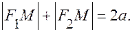 Опр. Эллипсом называется множество точек плоскости, для каждой из которых сумма расстояний до двух данных точек, называемых фокусами,