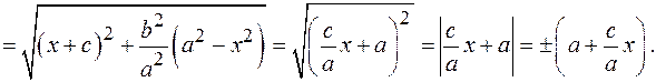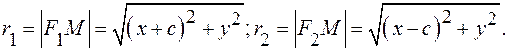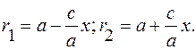 эллипса до фокуса и до соответствующей директрисы. Расстояния до фокусов дают формулы (5):