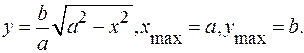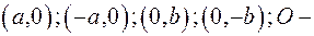 Точки пересечения эллипса с осями координат называются его вершинами. Пользуясь симметрией эллипса, рассмотрим его форму в 1 четверти.