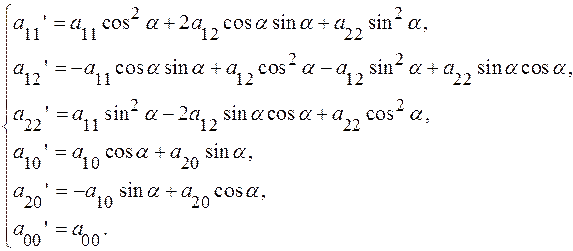 Итак, для любой линии 2-го порядка, заданной в ортонормированном репере уравнением (11), существует ортонормированный репер