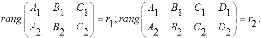Две плоскости могут совпадать, пересекаться, быть параллельными. Исследуем систему (7). Запишем основную и расширенную матрицы систем и их ранги: