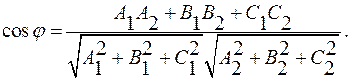 За угол между плоскостями принимается любой из двугранных углов, образованных ими. Он, очевидно, равен углу между их нормальными векторами: