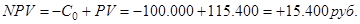 NPV = 15.400 руб. - чистая приведённая стоимость отсроченного дохода с учётом риска;