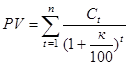 PV - приведенная стоимость ожидаемых денежных потоков;