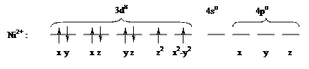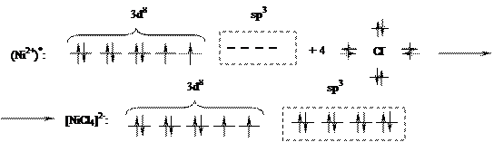 . Под действием электрического поля ионов хлора ион никеля (II) из основного переходит в возбужденное состояние с гибридизацией одной 4s и трех 4p-орбиталей: