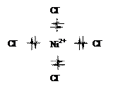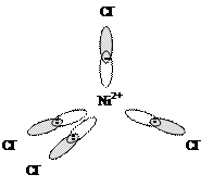 Согласно диаграммы, Ni2+ имеет четыре вакантные орбитали: 4s, 4px, 4py, 4pz. Ионы хлора на внешней оболочке содержат свободные неподеленные пары электронов -