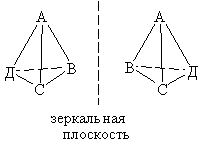 Оптическая изомерия. Наблюдается у комплексных соединений, структура которых не имеет элементов симметрии. В простейшем случае это тетраэдрический комплекс, с четырьмя различными лигандами, для которого существуют два изомера (см. схему), не совмещающиеся в пространстве. Такие изомеры называют оптическими антиподами. Один из оптических изомеров способен вращать плоскость поляризованного света влево (L-изомер), второй – вправо (D-изомер).
