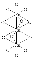 В большинстве случаев в кластерных комплексах комплексообразователи объединены помимо прочных одинарных или кратных связей ещё и мостиковыми лигандами: | [Ru3O12]12– | |