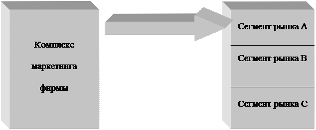3. Если товар предназначен лишь для определенной группы покупателей и предприятие выбирает некоторый сегмент рынка и разрабатывает для него соответствующий комплекс маркетинга, это значит, что реализуется целевой (концентрированный) маркетинг (рис.1.15).