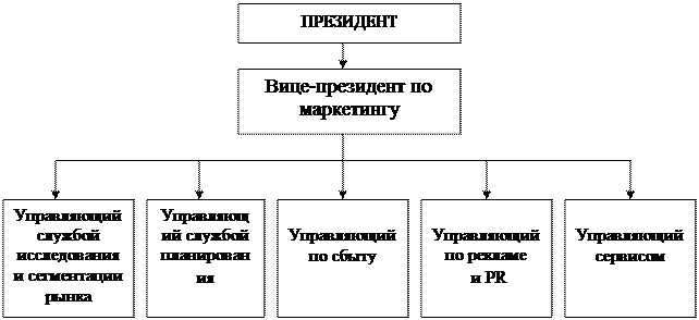 При функциональной организации службы маркетинга (рис. 2.1) каждый отдел (внутри этой службы) разрабатывает и осуществляет определенную функцию маркетинговой деятельности.