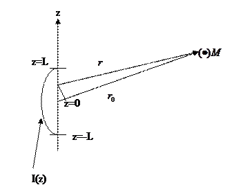 Рис. 4.1.Линейная антенна с произвольным токовым распределением